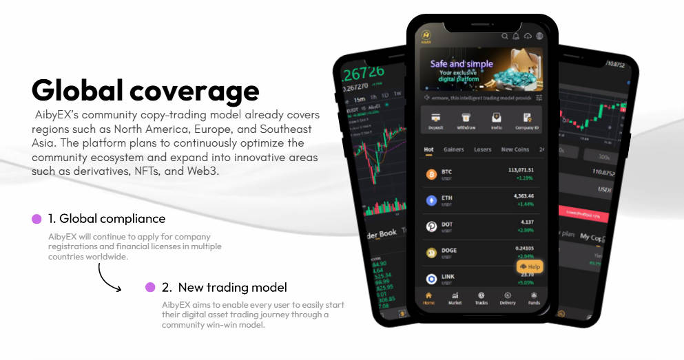 AibyEX’s community copy trading model has already expanded across North America, Europe, and Southeast Asia. The platform plans to continuously optimize its community ecosystem while exploring innovative businesses such as derivatives, NFTs, and Web3. Guided by the philosophy of “Compliance + Innovation + Community Win-Win,” AibyEX is committed to building a transparent, efficient, secure, and long-term value-driven global digital asset trading ecosystem.