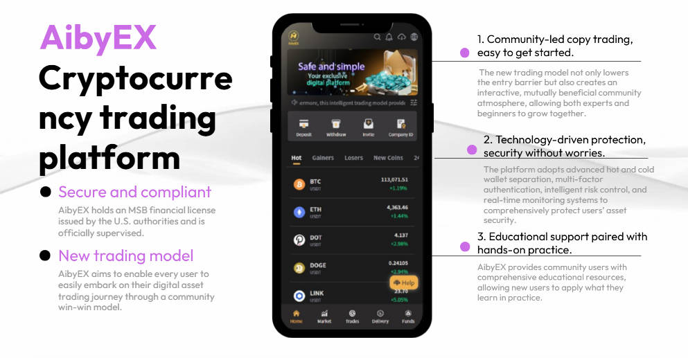 For beginners looking to enter the digital asset trading space, high barriers and complex operations have always been the biggest challenges. Headquartered in Colorado, USA, AibyEX Ltd, leveraging the official MSB (Money Services Business) license, has launched a brand-new Community Co-win Copy Trading Model, enabling users to easily follow experienced traders to start their trading journey while learning strategies and gaining real-market experience.