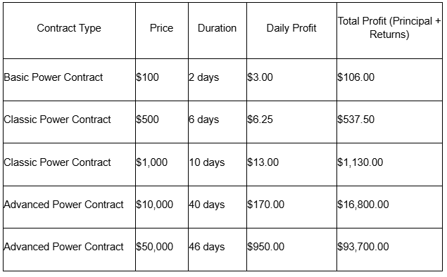 • Daily Passive Income – Earn every 24 hours; principal is returned after contract completion