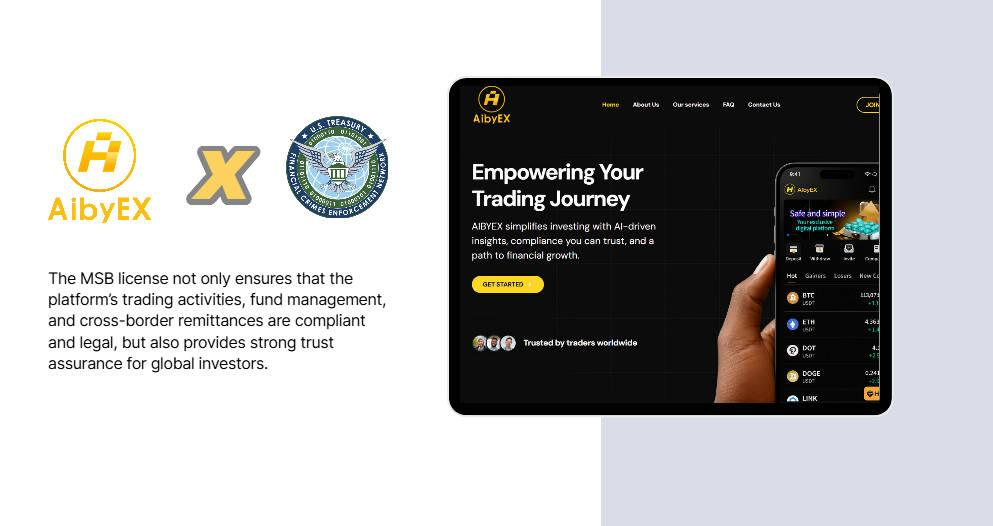 In today’s rapidly growing digital asset market, users are placing higher demands on the security, compliance, and service experience of trading platforms. Headquartered in Colorado, USA, AibyEX Ltd, with its officially regulated U.S. MSB (Money Services Business) license, has officially announced its position as a trusted global cryptocurrency trading platform, providing investors with a transparent, secure, and convenient digital asset trading environment.