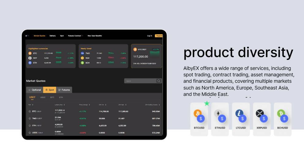 AibyEX offers a wide range of services, including spot trading, contract trading, asset management, and wealth management products, covering key markets across North America, Europe, Southeast Asia, and the Middle East. The platform supports multi-language interfaces and multi-time-zone customer service, ensuring that users worldwide can enjoy an efficient and convenient trading experience. At the same time, AibyEX actively promotes localized educational initiatives through online courses, community sharing, and live seminars to help users enhance their digital asset investment and risk management capabilities.